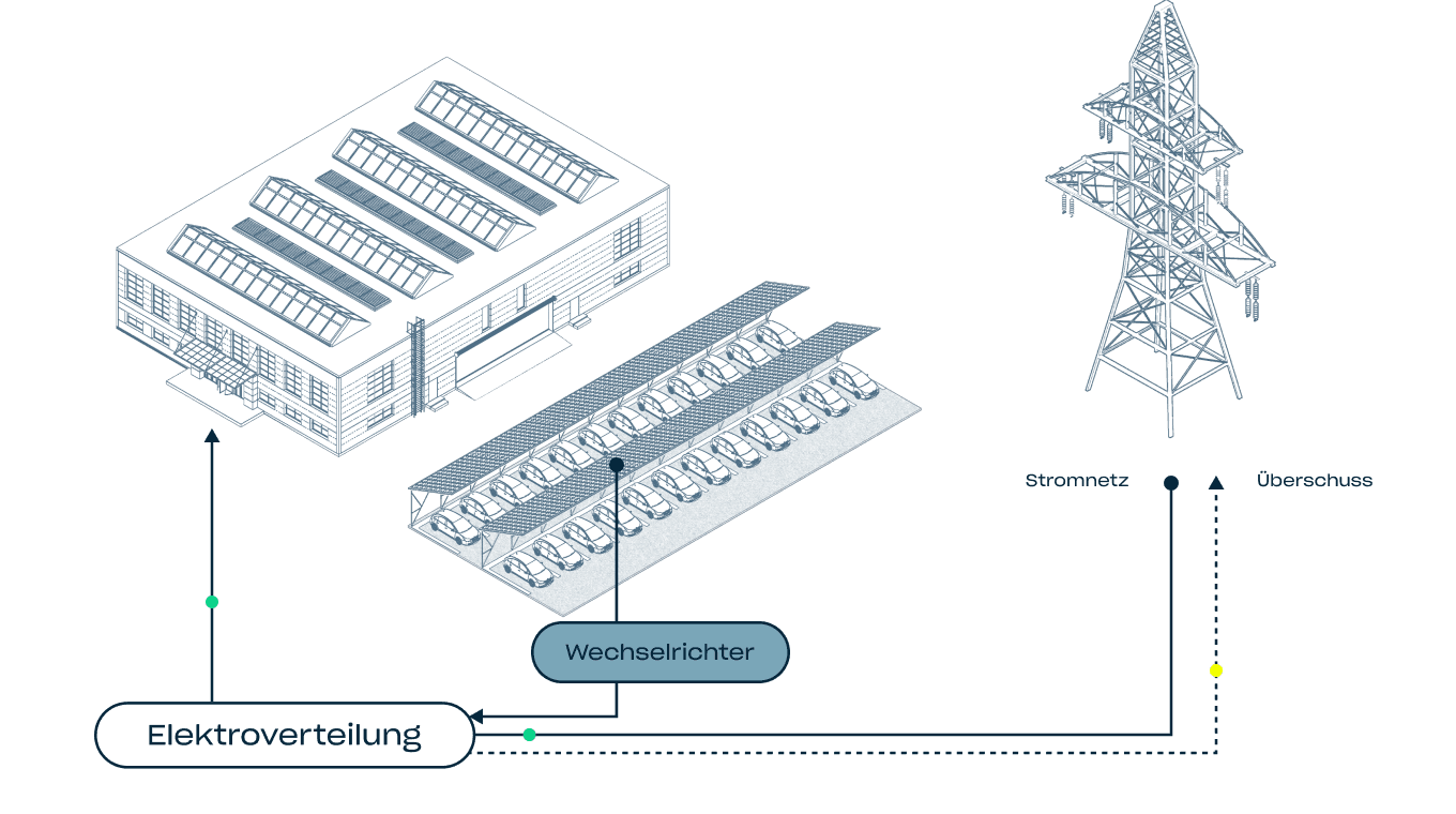 Die Autos deiner Mitarbeitenden, Kunden und Aktionäre brauchen schattige Parkplätze und dein Unternehmen muss seine eigene Energie erzeugen. «Trommelwirbel» - Carport. Oder Photovoltaik-Überdachungen. Oder Truckport. Egal wie du es nennen möchtest: Wir installieren es für dich.