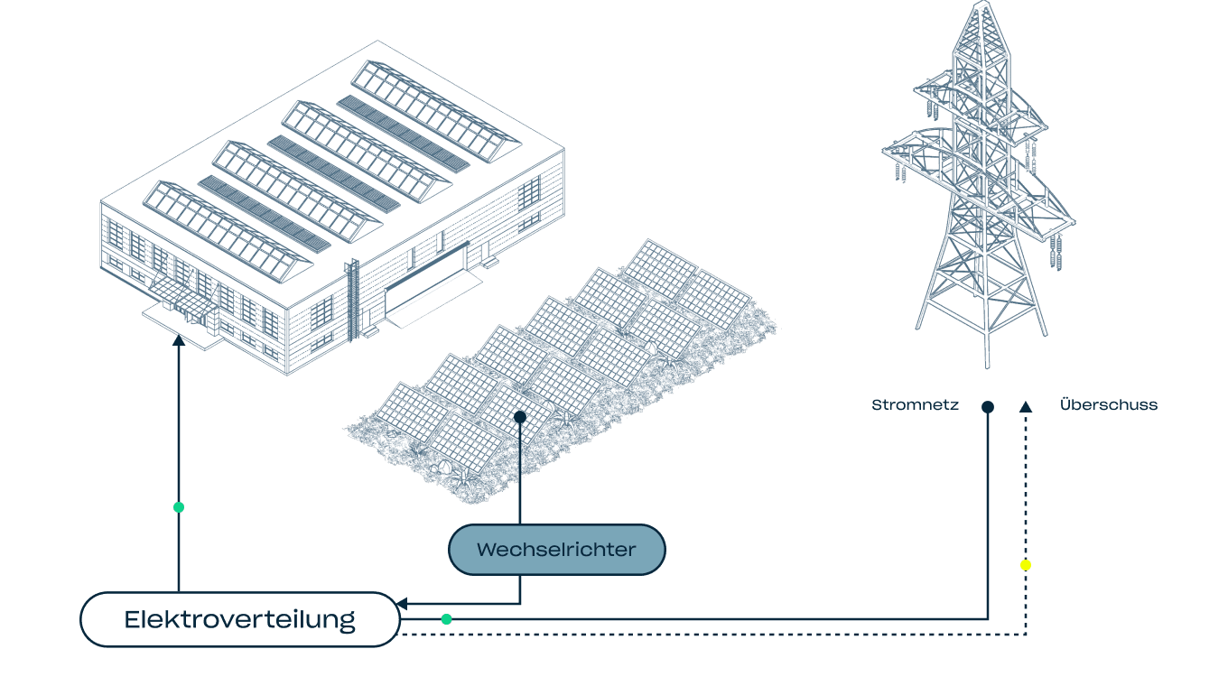 Wir wissen, dass es nicht das Ziel deines Unternehmens ist, die Welt zu retten, aber es ist auch nicht das Ziel, sie zu zerstören. Indem du auf deinem Boden eigenen PV-Strom erzeugst, sendest du deinen Kunden, Mitarbeitenden und Aktionären ein klares Signal. Und wenn es dir zusätzlich für deinen ESG-Bericht hilft, umso besser.